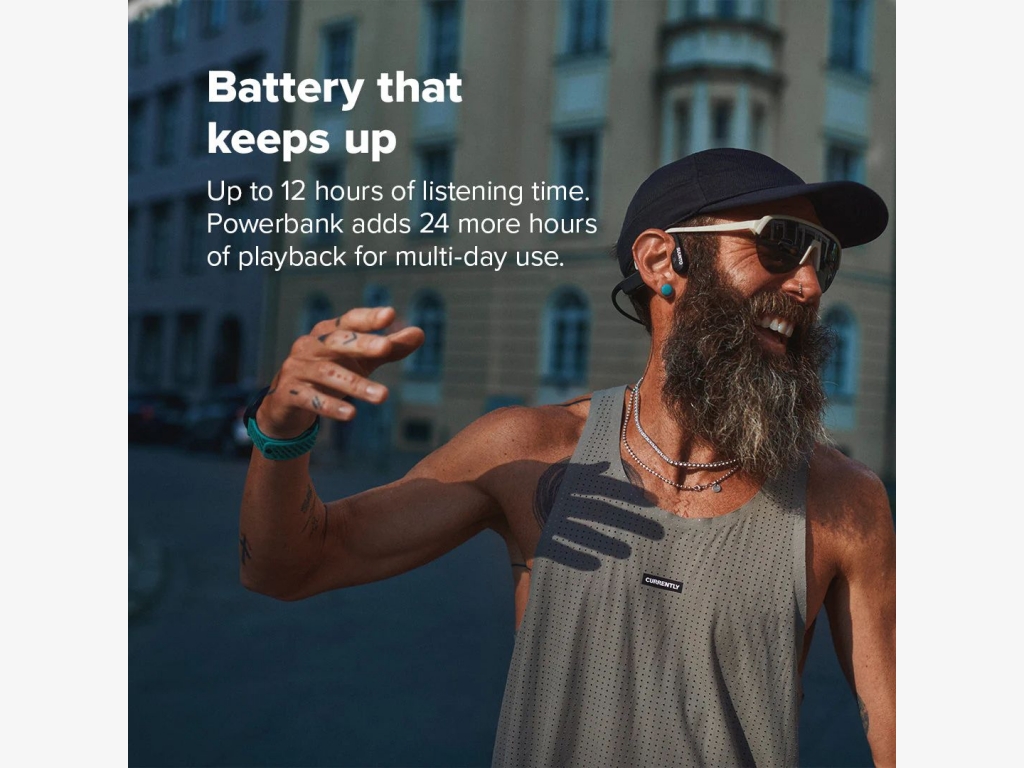 - Open-ear technológia, ktorá umožňuje počúvať hudbu a zároveň vnímať okolie
